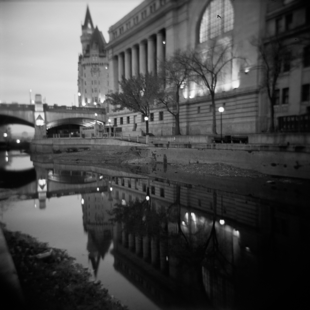 The Rideau Canal. Holga braced on a fence post, bulb ~1sec.